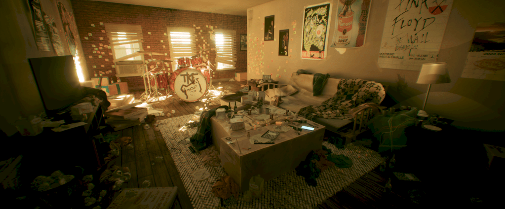 Inspired by the movie Whiplash, the room of an art obsessed drummer.